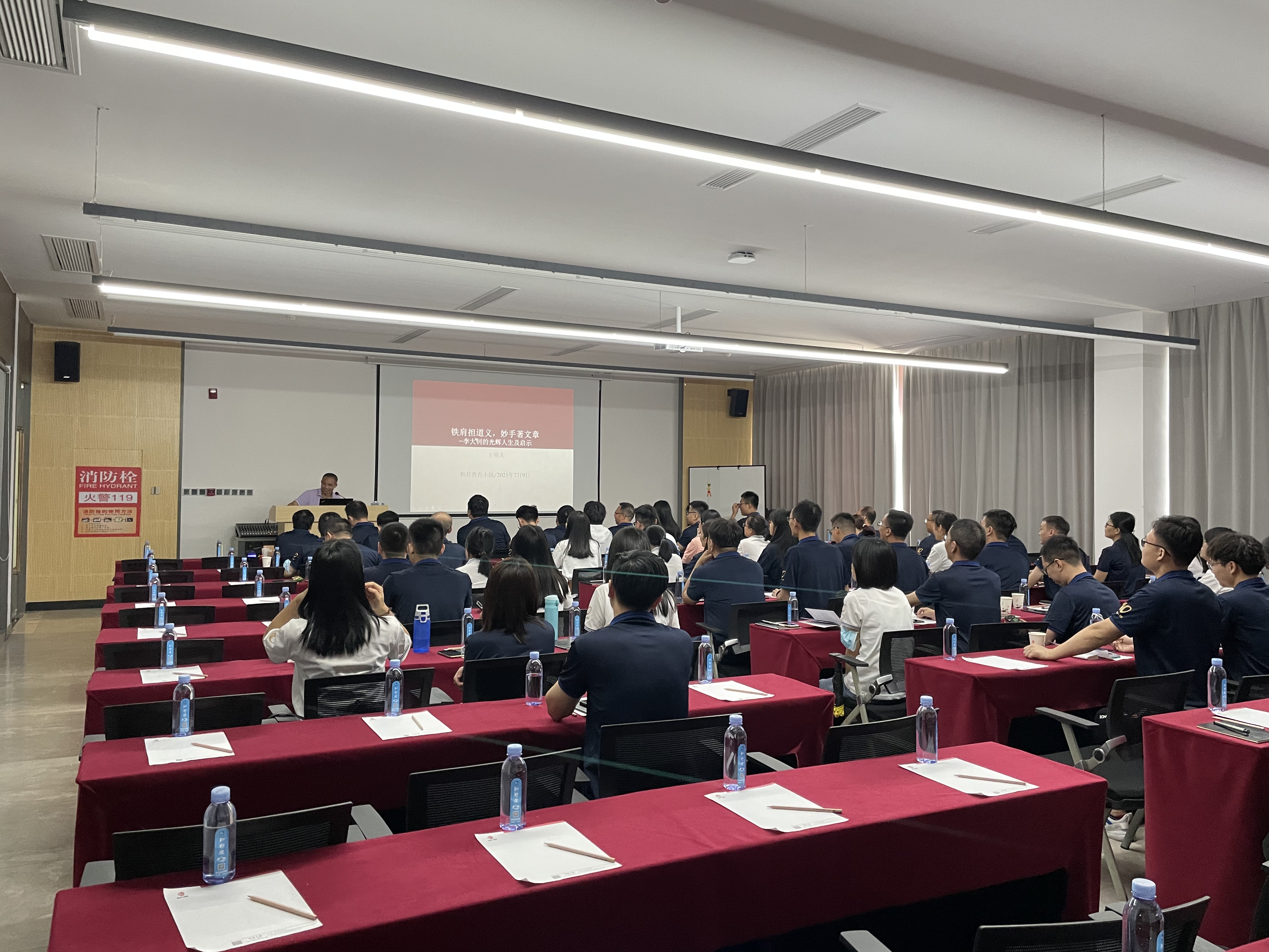 參觀結(jié)束后,王明夫老師為大家講解《鐵肩擔(dān)道義,妙手著文章——李大釗的光輝人生及啟示》。課堂上,王老師帶領(lǐng)大家回溯歷史軌跡,進(jìn)一步深刻認(rèn)識(shí)了李大釗這位偉大的革命先烈。通過(guò)李大釗的光輝人生,所有人跟著思考這些問(wèn)題:人生何求?我們又為社會(huì)、國(guó)家做了哪些事情呢?此外,李凱城老師也為大家開(kāi)展了《從百年黨史中汲取歷史智慧》的教學(xué)課程。李老師立足管理學(xué)角度,通過(guò)講解百年黨史及許多革命過(guò)程中的小故事,借此延伸到現(xiàn)代的企業(yè)管理。大家也從中有了新的啟發(fā),深刻感受到肩負(fù)的責(zé)任和使命。從黨的百年偉大奮斗歷程中,我們汲取繼續(xù)前進(jìn)的智慧與力量。