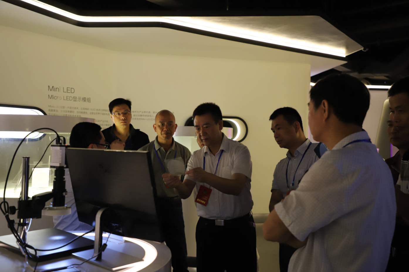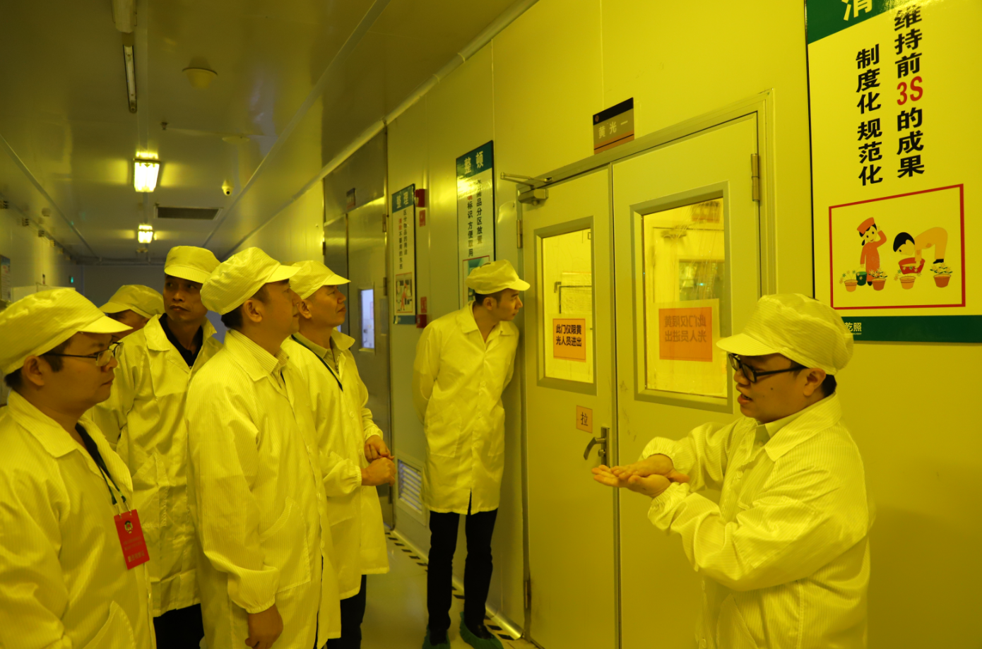傅主席一行參觀了公司展廳,詳細(xì)了解了公司基本情況、產(chǎn)品信息、知識產(chǎn)權(quán)工作及未來規(guī)劃。而后,考察組一行參觀了藍(lán)綠事業(yè)部生產(chǎn)車間。在車間,傅主席一行聽取了外延片和芯片生產(chǎn)工藝流程介紹,察看了儀器設(shè)備運行情況,并對產(chǎn)線的自動化和智能化程度給予了高度肯定。