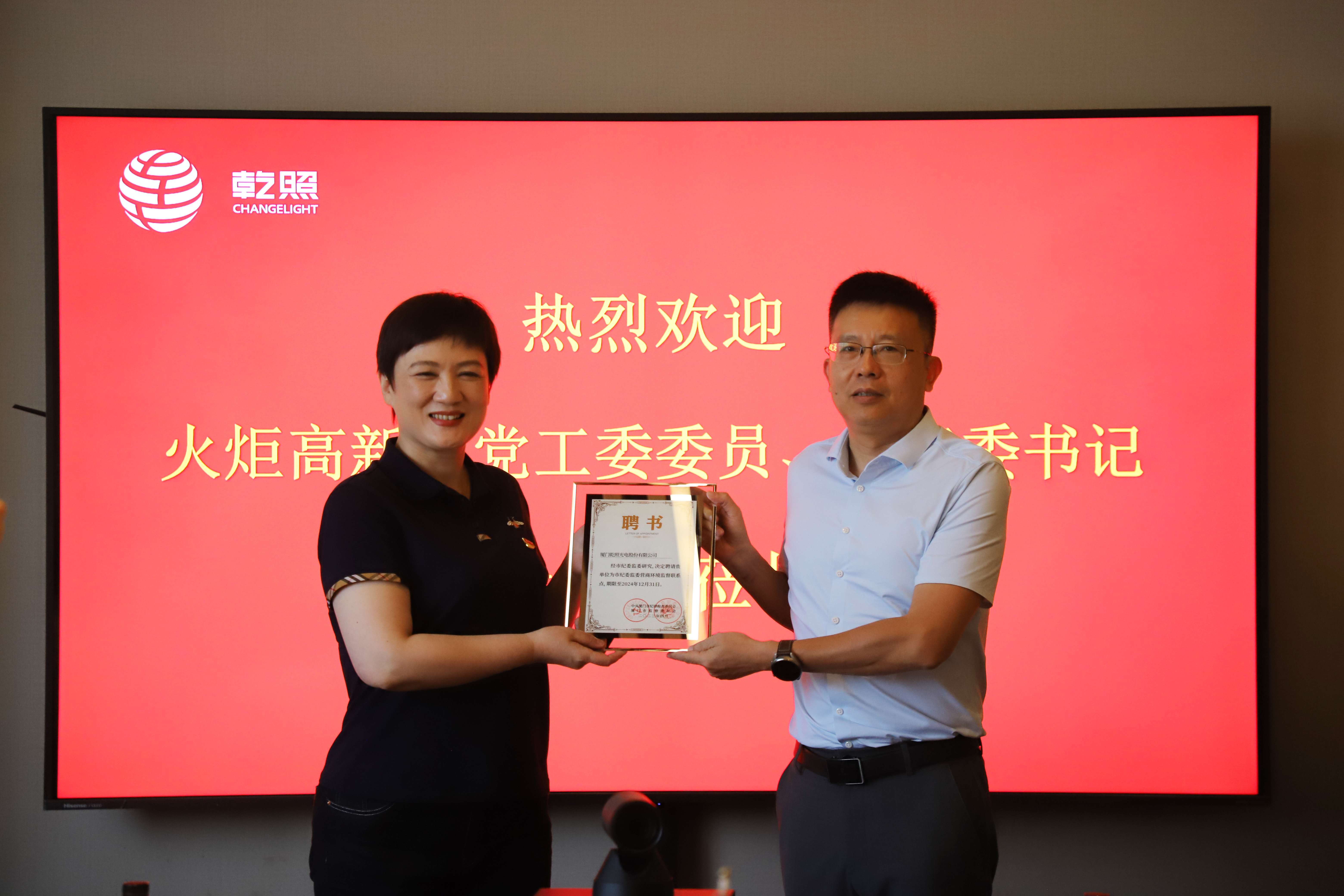 這份聘書,對乾照光電來說是一份信任,更是一種責任!乾照光電將不辜負廈門市紀委監委的信任和寄托,以此為契機,深入了解相關企業心聲,及時有效反映并疏通企業發展中遇到的問題,為市紀委監委通過“聯系點”發揮精準監督、持續監督作用提供高效助力,共同助推廈門營商環境持續優化。