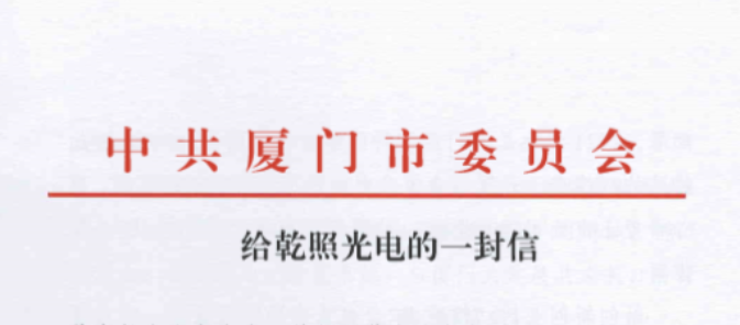 近日,乾照光電收到中共廈門市委員會(huì)的來信,信中廈門市委、市政府對(duì)于我司過去一年的發(fā)展給予了積極的評(píng)價(jià),并在一元肇始之際,對(duì)我司表達(dá)了新年的祝福和誠摯的問候,同時(shí)就我司2021年的發(fā)展規(guī)劃做出重要指引。 “天...