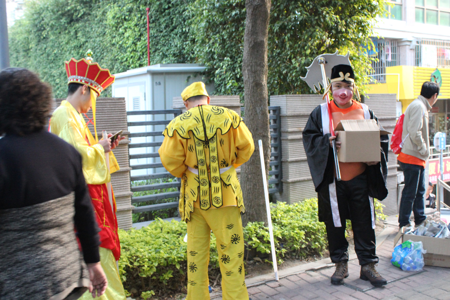 大冬天的,大家都起了個(gè)大早,就為了喬裝打扮呢。在這,小編要特別感謝那幾位穿道具服的小伙伴。他們“身披盔甲”,還未進(jìn)場已經(jīng)大汗淋漓啦。你們辛苦啦!