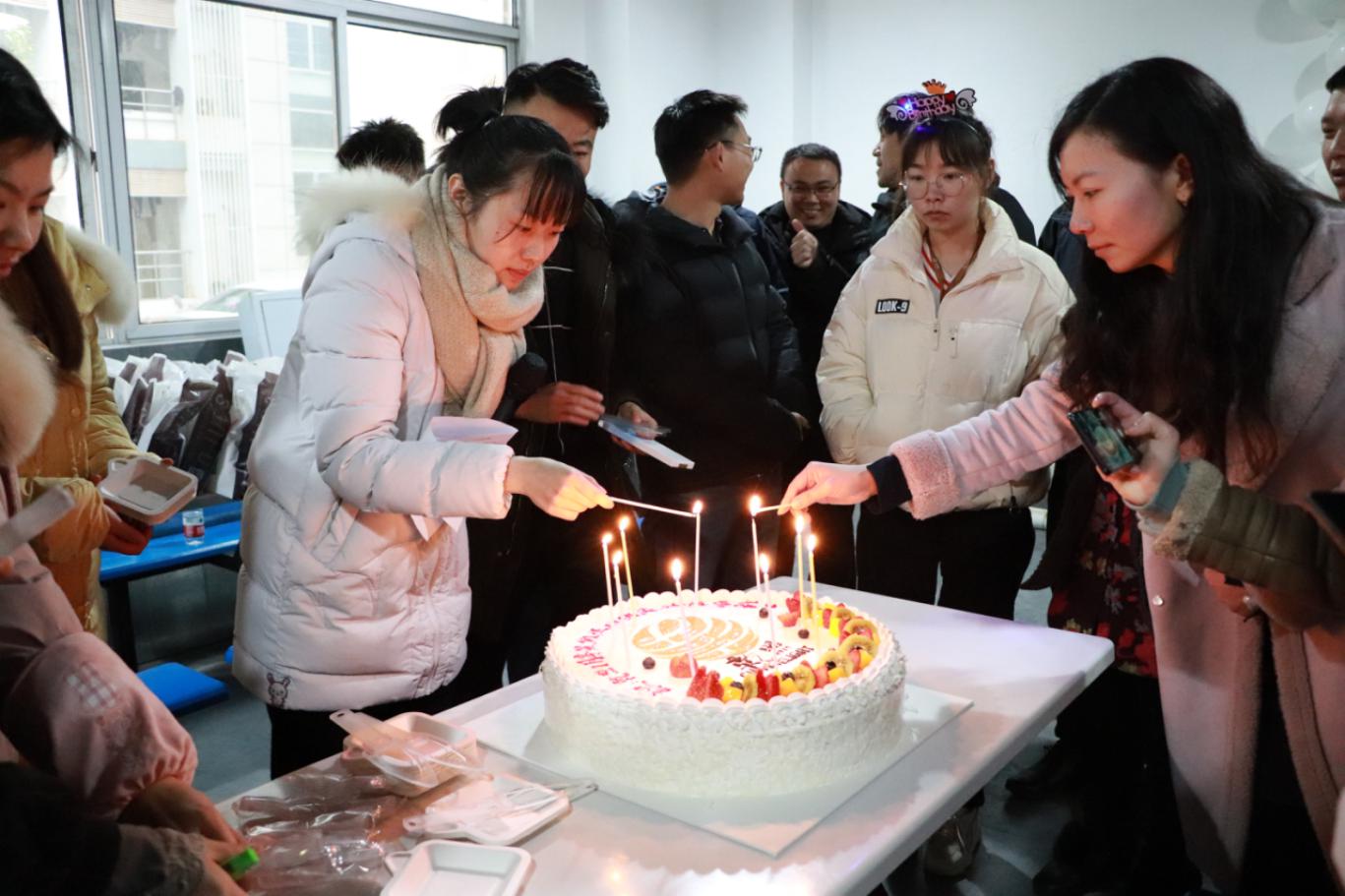 1月16日下午,生日會正式開始,24位壽星陸續(xù)進(jìn)場就坐,各部門領(lǐng)導(dǎo)紛紛上臺為壽星們送上祝福和賀卡。在收獲與祝福聲中,我們將這些年輕歡樂的笑臉在記憶中定格。