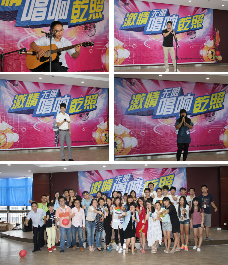 本季歌唱比賽旨在為公司尾牙活動選拔才藝類節目,發揮發掘大家文藝方面的才能,同時通過對企業文化的發揚達到促進對員工的影響,開拓創新思維。各位參賽選手準備充分,發揮最優水準。各位大眾評委通場與歌手互動,比賽現場始終洋溢著隆重熱烈的氣氛。一首由外延制造部設備組洪輝柏的獨唱《你是我的眼》,拉開了比賽的序幕。整場比賽歌聲悠揚,現場氣氛火爆,洋溢著濃郁的節日氣氛。兩首不同風格的《海闊天空》在外延部戴金途和采購部陳明郅的演繹下,把比賽推向高潮。現場吸引了各個部門領導、員工前來觀戰,并不時贏得陣陣掌聲和歡呼聲。在經過緊張激烈的評選后,最終有11名選手進入復賽。在8月27號下午,決賽終于開始了。選手們雖然心情更加緊張,但一上臺就盡情歌唱,臺下的評委也給出了公正公平的分數。本次比賽也秉承著“友誼第一,比賽第二!”的宗旨,有的選手雖然沒獲獎,但他們非常享受這個舞臺。最終,芯片部的陳健文演唱的一首《小情歌》虜獲了所有評委的心,獲得冠軍,外延部的戴金途取得亞軍,研發部的姜偉取得季軍的好成績。