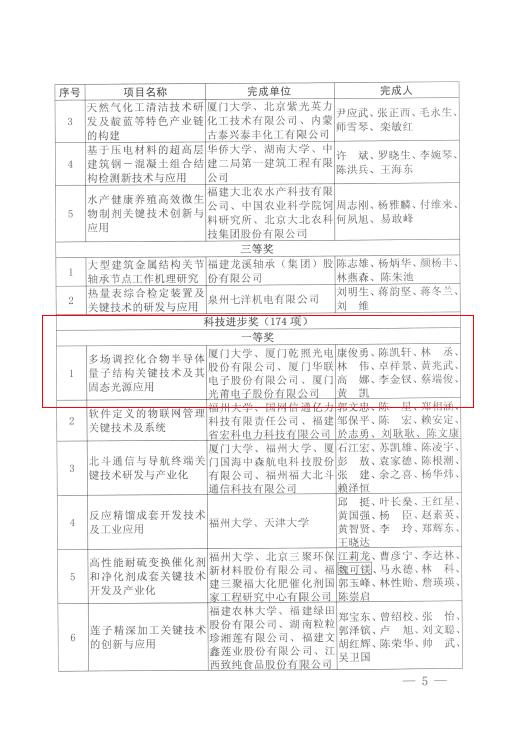 熱烈慶祝乾照光電榮獲福建省科技進步獎一等獎
