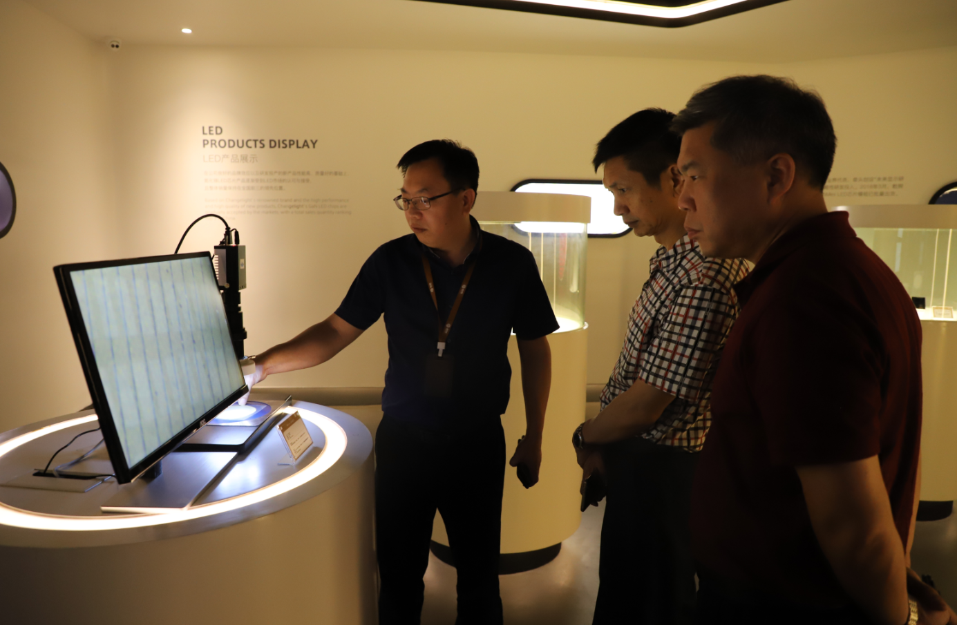 6月11日,廈門市中級人民法院副院長傅遠平,翔安區法院院長劉友國一行蒞臨廈門乾照光電股份有限公司考察調研。乾照光電總裁蔡海防,技術中心總監陳凱軒陪同接待。