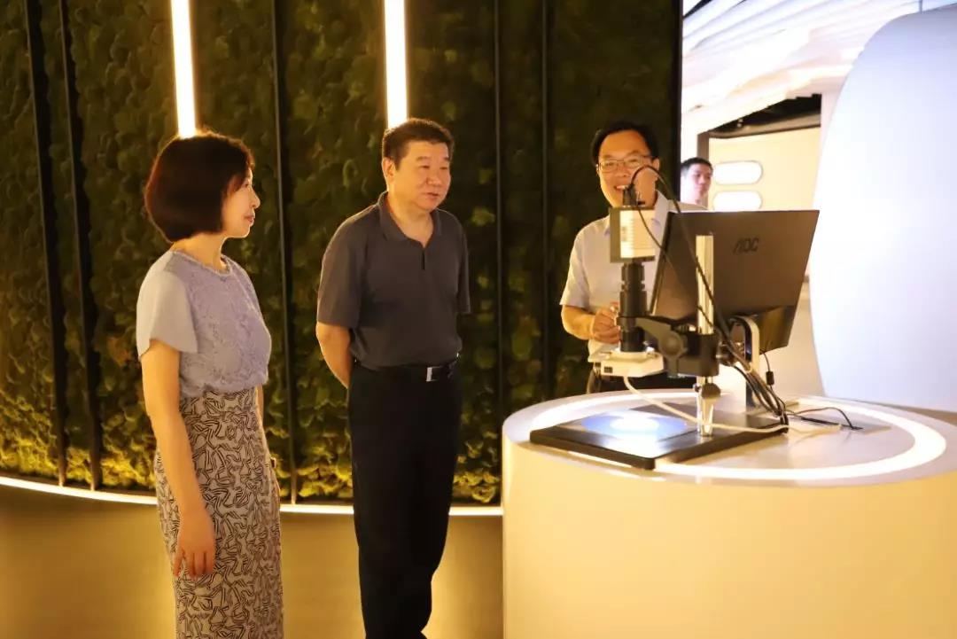 在公司展廳,孔局長一行詳細了解了公司的產品升級、技術創新以及高端產品研發等情況。孔局長一行邊聽講解,邊圍繞第三代半導體產業,以及乾照光電正在生產研發的Mini LED、Micro LED、VCSEL等產品的技術、應用等問題,與相關負責人進行了深入的交流。同時,結合LED行業現狀和發展,孔局長在公司技術升級、研發創新以及發展布局等方面,給予了寶貴的指導意見。