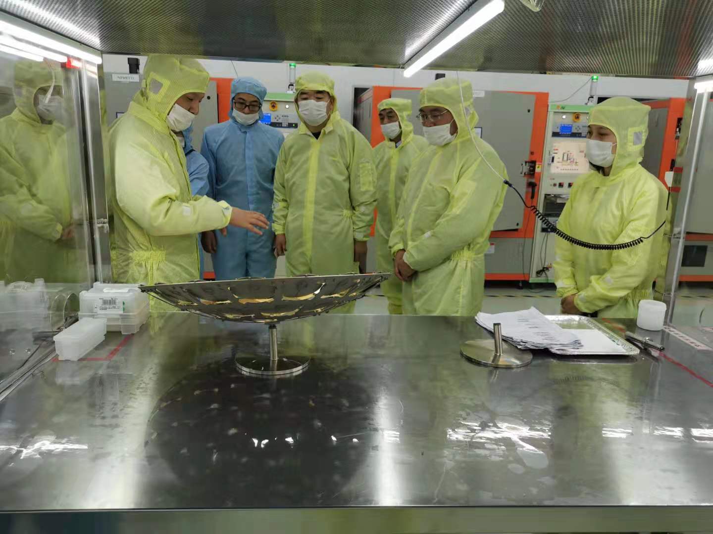 調(diào)研組一行先后參觀了公司展廳和生產(chǎn)車(chē)間。尉副處長(zhǎng)觀看了外延和芯片的生產(chǎn)制作流程,并針對(duì)外延芯片的檢測(cè)方式和工藝進(jìn)行了探討與交流。調(diào)研過(guò)程中,尉副處長(zhǎng)對(duì)公司現(xiàn)代化的生產(chǎn)技術(shù)和設(shè)備的運(yùn)作程序表示高度的贊賞。
