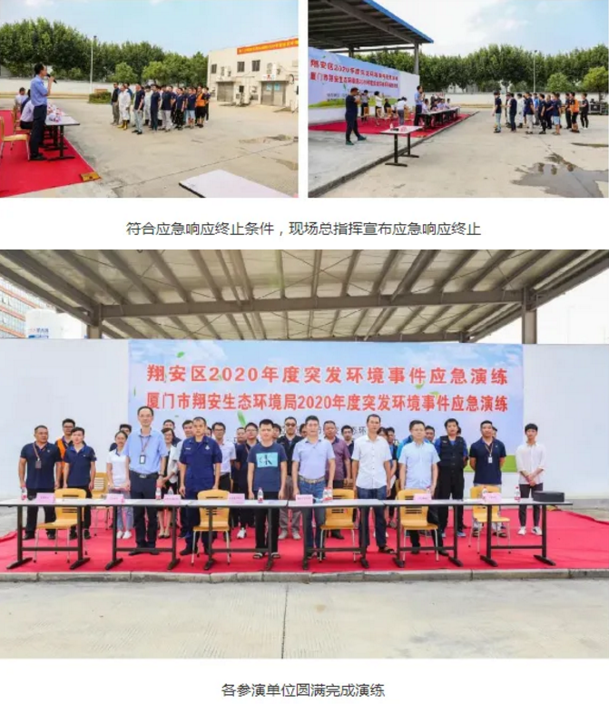 2020年9月4日下午4點,由廈門市翔安生態環境局主辦,翔安區應急管理局、翔安區公共安全辦區、翔安消防救援大隊、馬巷鎮政府協辦,廈門乾照光電股份有限公司、廈門市正巽環保科技有限公司承辦的2020年度翔安區突發環境事件應急演練在廈門乾照光電股份有限公司舉行。